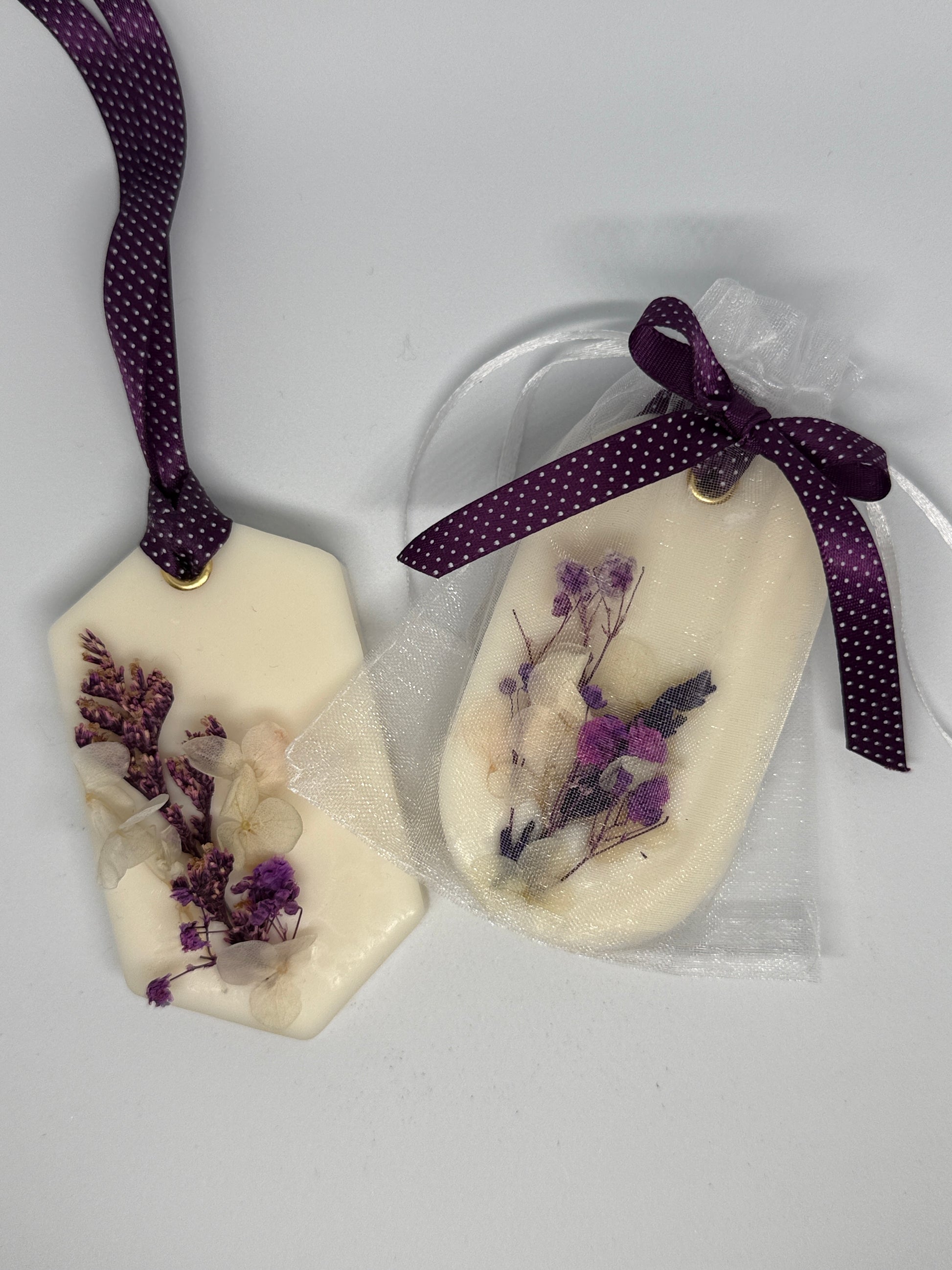 2 soy wax hanging fresheners in Lavender & Chamomile fragrance.