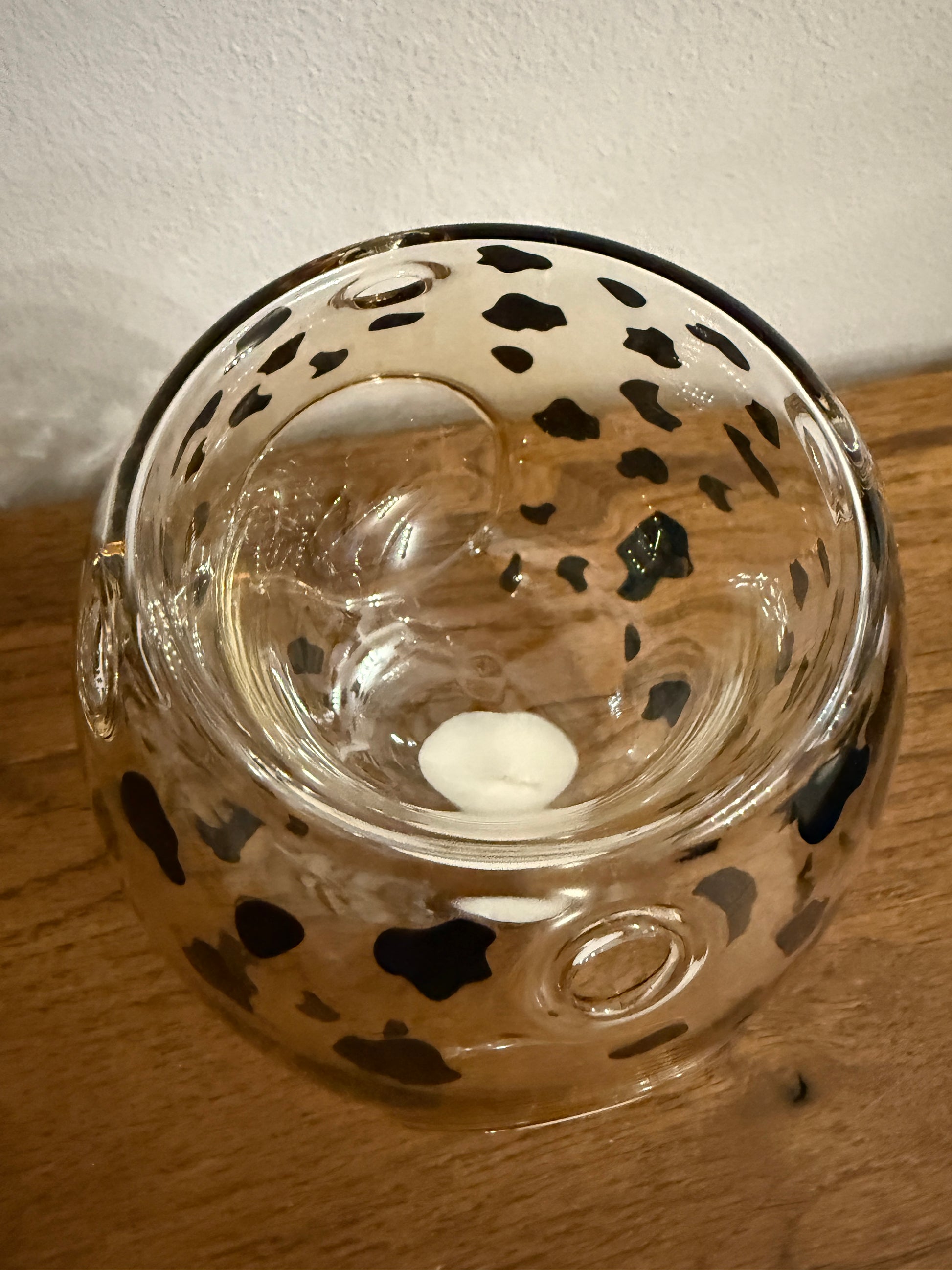 Stylish glass wax / oil warmer in transparent brown cheetah design.